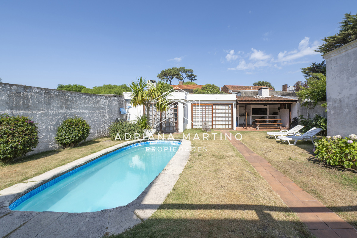 En el fondo nos encontramos con piscina una piscina, parrillero techado y un apartamento con 1 dormitorio y baño.